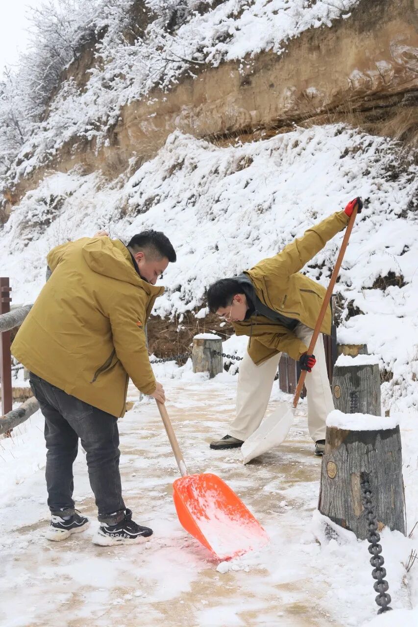 庆阳凤凰塬舍喜迎新年瑞雪,龙栖谷景区银装素裹、景致绝美。面对降雪考验,全员迅速清扫道路积雪,筑牢游客安全防线,以坚守与担当守护平安。游客沉浸式打卡雪后美景,入住特色窑洞民宿,体验陇东冰雪健身基地各类冰雪项目,于冰雪盛景中乐享游玩乐趣,邂逅别样新年文旅体验。