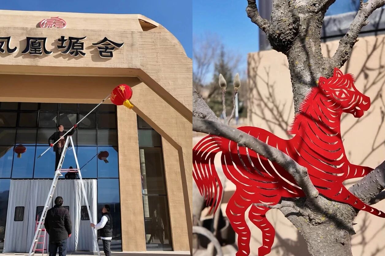 庆阳凤凰塬舍酒店院区节庆布置数日前已就绪,红灯笼高悬、窗花点缀。除夕当日,员工仍在做最后细节确认,让抵店宾客从踏入院门起,便能感受到地道的陇东年味和质朴的待客诚意。