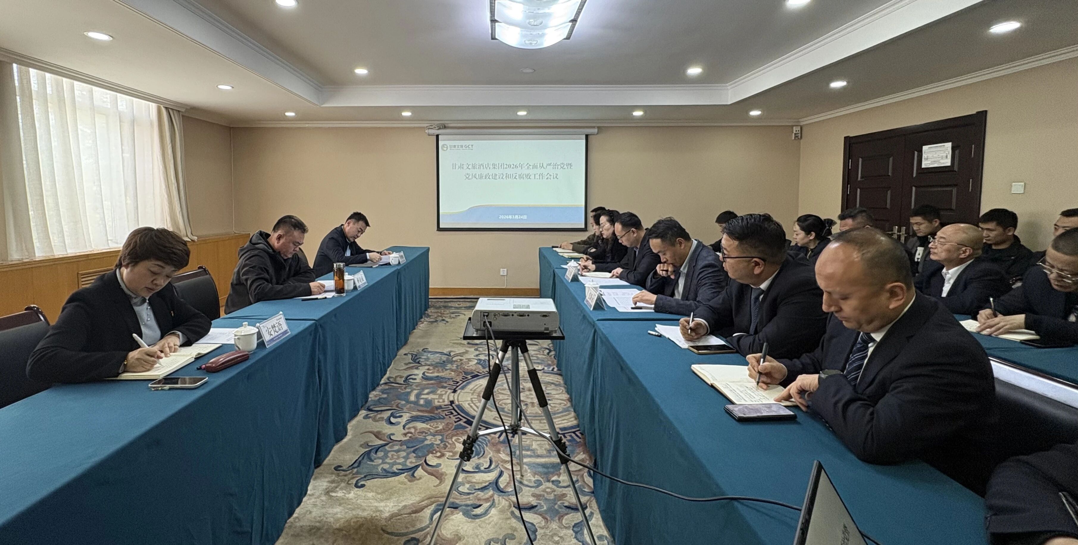 3月24日,甘肃文旅酒店集团召开2026年全面从严治党暨党风廉政建设和反腐败工作会议。会议传达学习了二十届中央纪委五次全会、十四届省纪委五次全会及甘肃文旅集团2026年全面从严治党暨党风廉政建设和反腐败工作会议精神。全面总结2025年党风廉政建设和反腐败工作,深入分析当前存在的问题与不足,安排部署2026年重点任务。