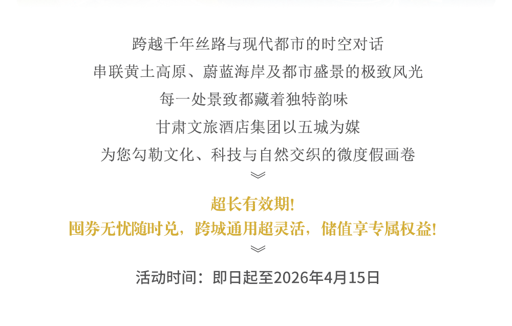 五城筑梦·微度假丨甘肃文旅酒店集团“久时效+大力度”优惠畅游多地