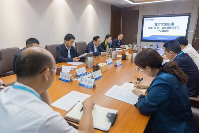 9月18日上午,甘肃文旅集团召开党委(扩大)会议暨理论学习中心组学习会议,传达学习习近平总书记视察甘肃重要讲话和指示精神、在全面推动黄河流域生态保护和高质量发展座谈会上的重要讲话精神,集体观看了《文脉 水脉 国脉——习近平总书记考察甘肃陕西纪实》。集团党委书记、董事长石培文主持会议,全体领导班子成员,各一级子公司、各部门主要负责人参加会议。